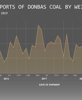 Judging by the same import declarations, Donbas-origin anthracite coal accounts for 97% of imports of anthracite into Russia in this period by dollar value and weight. These imports peaked in 2017, but have continued through 2019 and 2020.