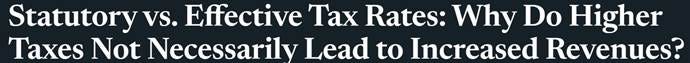 Having reviewed the Laffer Curve, the question of interest is clear: how much can governments raise revenue by increasing statutory tax rates? Indeed, policymakers only have the power to change statutory rates; however, effective rates indicate the ability to raise revenue. Or, to put it another way, how far are we from the peak of the Laffer Curve?