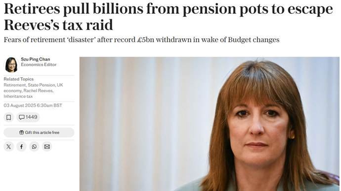 The death tax change has overnight reduced the value of pension savings by 40%. Those are savings for this and the next generation. The previously tax free inheritance could have been used by the next generation for their starter home, college loans pay-offs and so on. Now, 40% of it will not be there.
