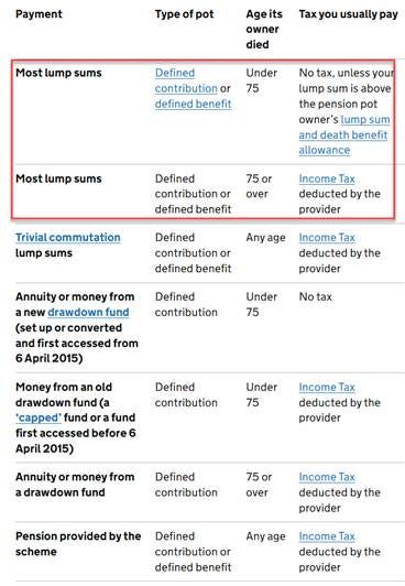 - Death-in-service lump sum benefits and dependants’ pensions from defined benefit pension schemes will be excluded from the new rules.